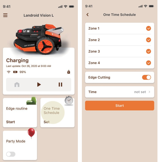 Pokud chcete sekačku okamžitě spustit na určitou dobu sekání a sekání okrajů nebo pokud sekačku ručně přesunete do oblasti, kam se sama nedostane, a chcete, aby v této oblasti sekala, můžete v aplikaci povolit funkci "Jednorázový plán".