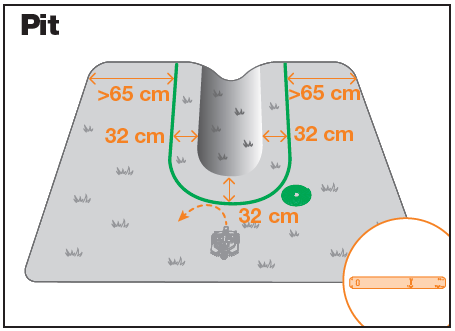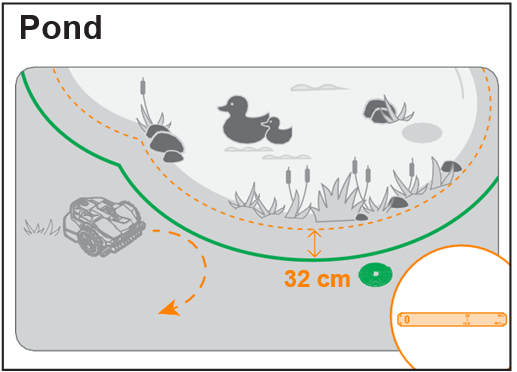 Kolem rybníčků nebo jam může růst nerovnoměrná a nejednotná tráva, která může způsobit vniknutí a pád Landroid Vision. Abyste tomu zabránili, položte kolem těchto míst magnetické pásky.