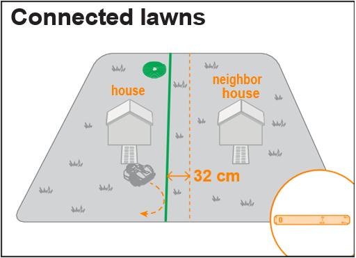 Pokud váš trávník navazuje na trávník souseda, doporučujeme nainstalovat magnetické pásy nebo vytvořit 5 cm širokou cestu bez trávy jako ohraničení.