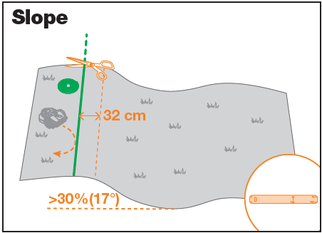 Pokud má okraj vašeho trávníku strmý sklon vyšší než 30 % (17°), bude mít zařízení Landroid Vision potíže s navigací po svahu. Pro ochranu zařízení Landroid Vision se doporučuje obklopit oblast svahu magnetickým pásem nebo zřídit cestu bez trávy, která je širší než 5 cm.