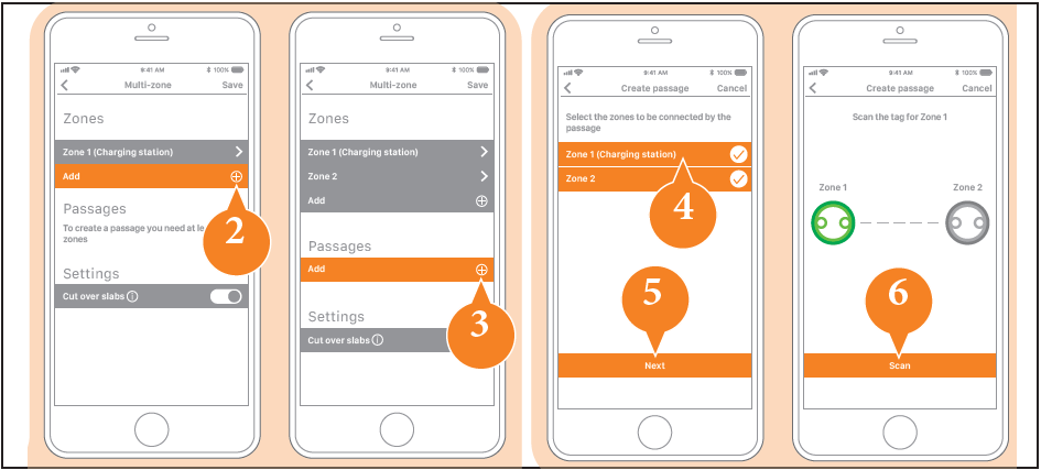 Για να διασφαλίσετε τη σωστή λειτουργία του Landroid Vision σε πολλαπλές ζώνες, καταγράψτε τις πληροφορίες RFID στην εφαρμογή. Εάν το τηλέφωνό σας υποστηρίζει NFC, ανοίξτε την εφαρμογή και σαρώστε την ετικέτα RFID. Μπορείτε να δημιουργήσετε ένα πέρασμα για να συνδέσετε δύο ξεχωριστές ζώνες. Μόλις ρυθμιστεί, το χλοοκοπτικό θα αναγνωρίσει το RFID και θα πραγματοποιήσει τη μετάβαση με επιτυχία.