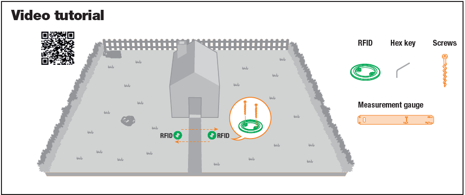 Χρησιμοποιήστε το παρεχόμενο μετρητή μέτρησης για να τοποθετήσετε την ετικέτα RFID έτσι ώστε η άκρη της να απέχει 50-60 cm από την άκρη του γκαζόν και, στη συνέχεια, στερεώστε την με δύο βίδες.