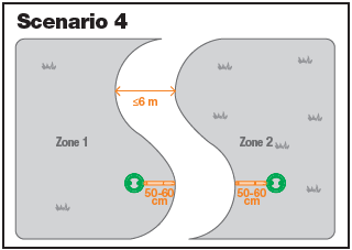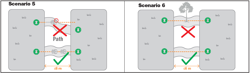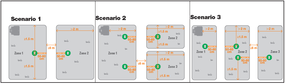 Δεν υπάρχουν εμπόδια ή μεγάλες περιοχές γυμνού γρασιδιού σε απόσταση 1,5 m γύρω από κάθε RFID και η άκρη του γκαζόν σε αυτή την περιοχή είναι ευθεία.
