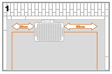 Front Clearance: Allow for an 80 cm straight path in front of the charging base.