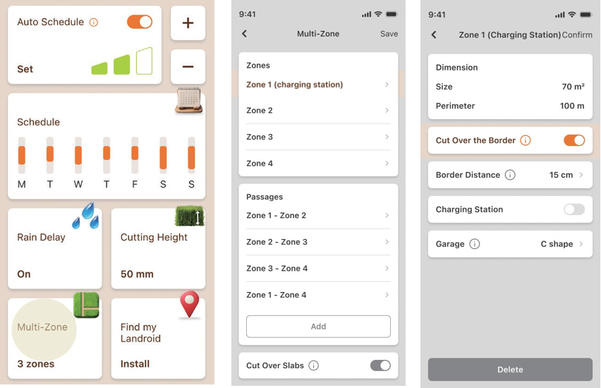 With the “Edge routine” function enabled, the mower can travel between the paving stones and the lawn, effectively trimming the weeds along the edges of the paving stones.