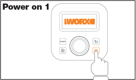 After positioning Landroid Vision in the charging station and allowing it to charge, press and hold the power button until the display lights up.