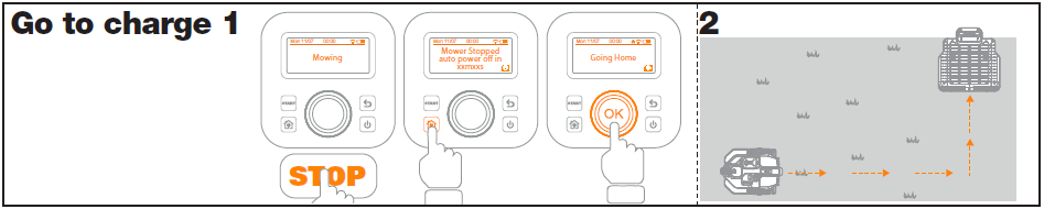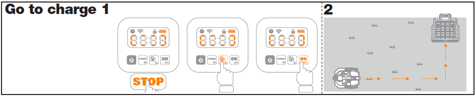 To send Landroid Vision back to the charging station, press the Stop button to stop mowing.