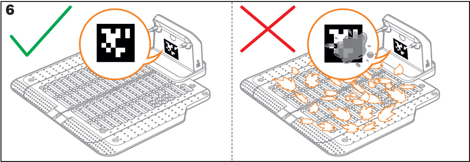 Insert the charging tower into the charging station plate. Ensure the QR code on the tower remains visible.