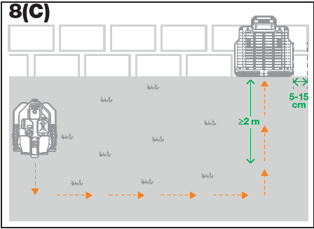 Provide a 2 m straight path in front of the charging station along the lawn edge for the Landroid Vision to enter easily.
