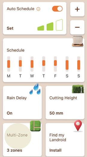 Landroid Vision havaitsee sateen ja keskeyttää leikkuun nurmikon suojaamiseksi.